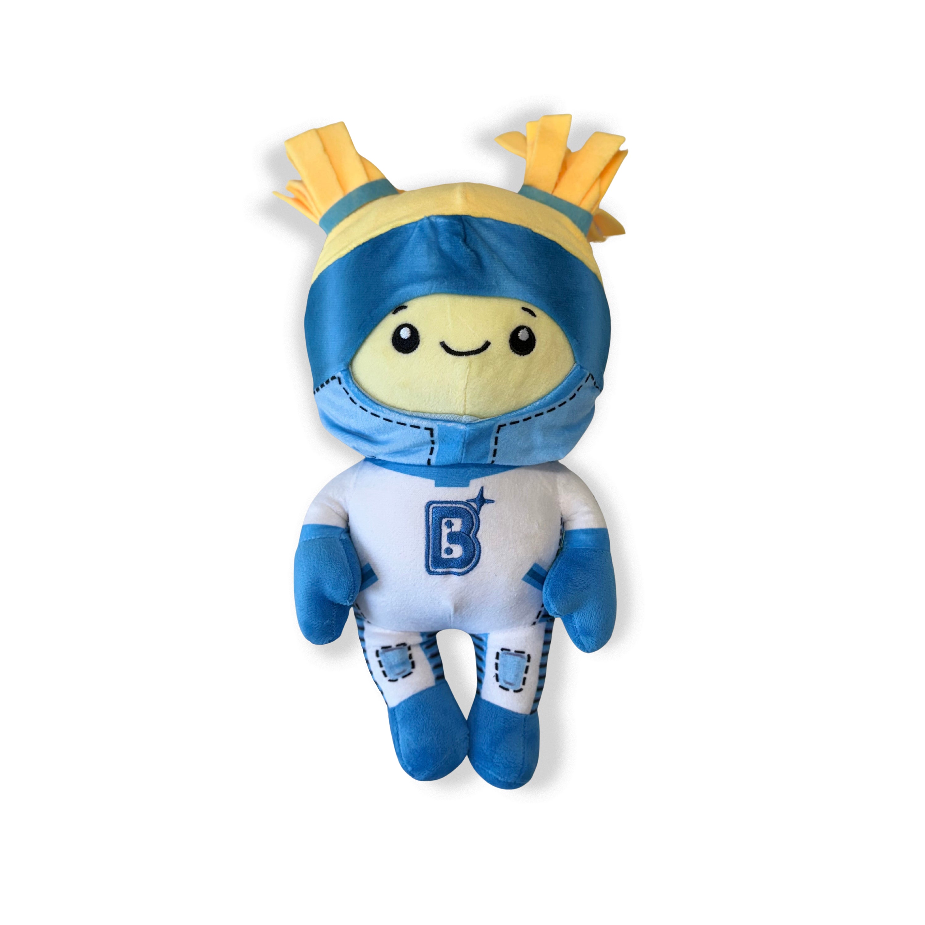 Signature Spark Design: Iconic blue-and-yellow Brainspark outfit with stitched “B” emblem.
